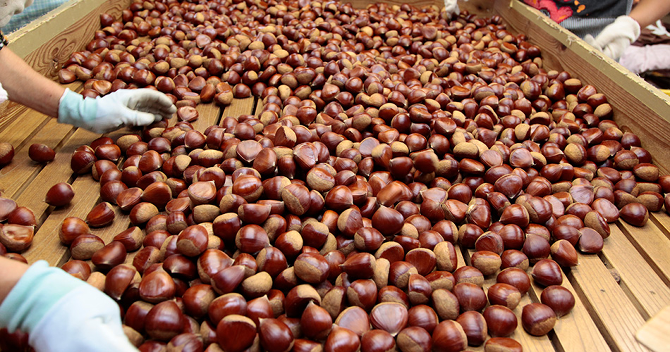 栗を拾う