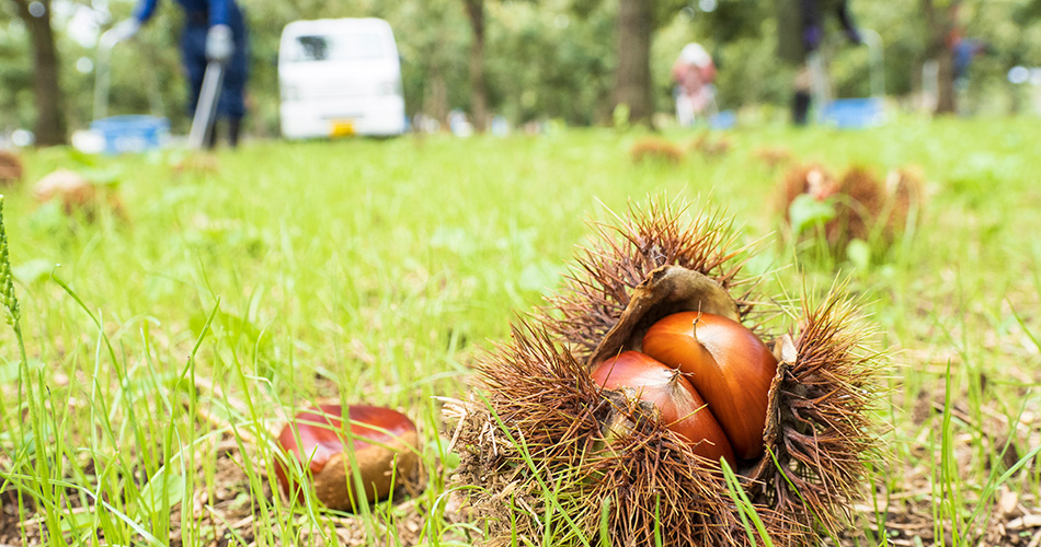 栗を拾う